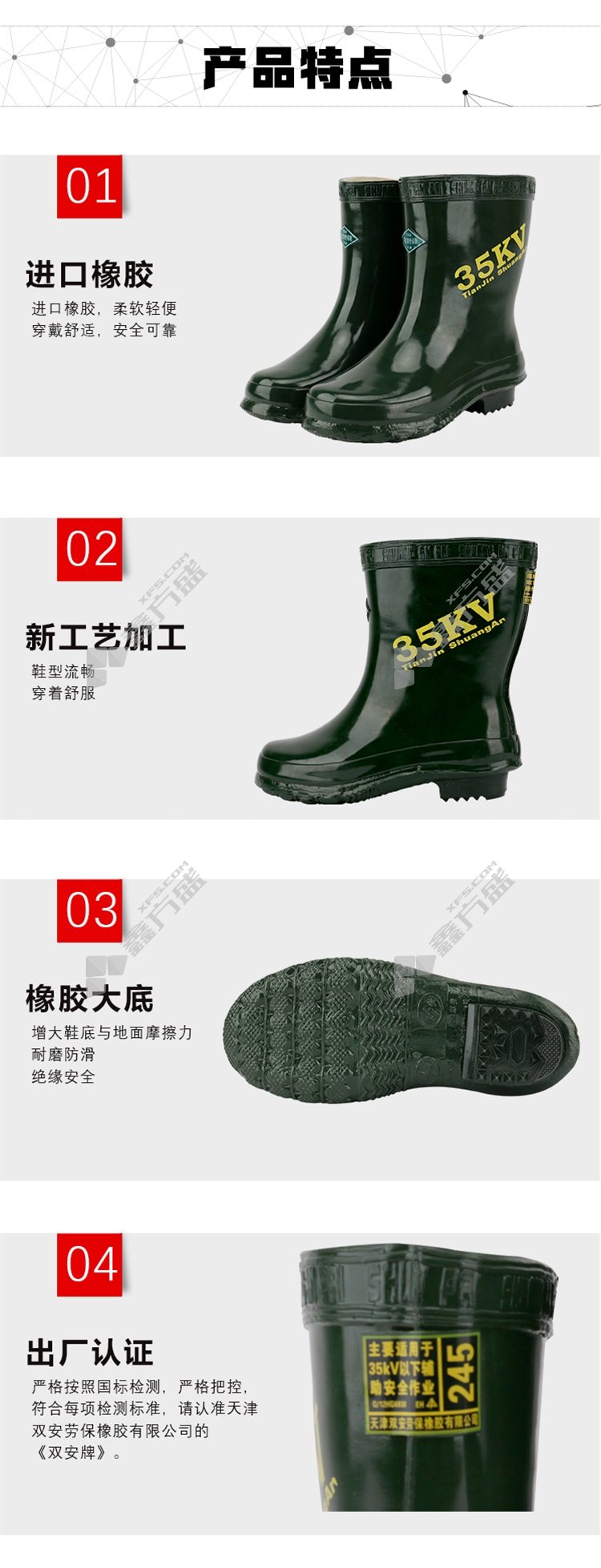 shuangan 35 KV insulated booties 35 KV 43code green 35KV/38code /green