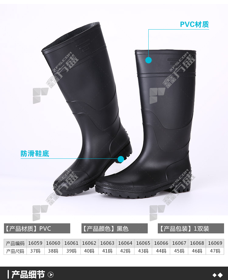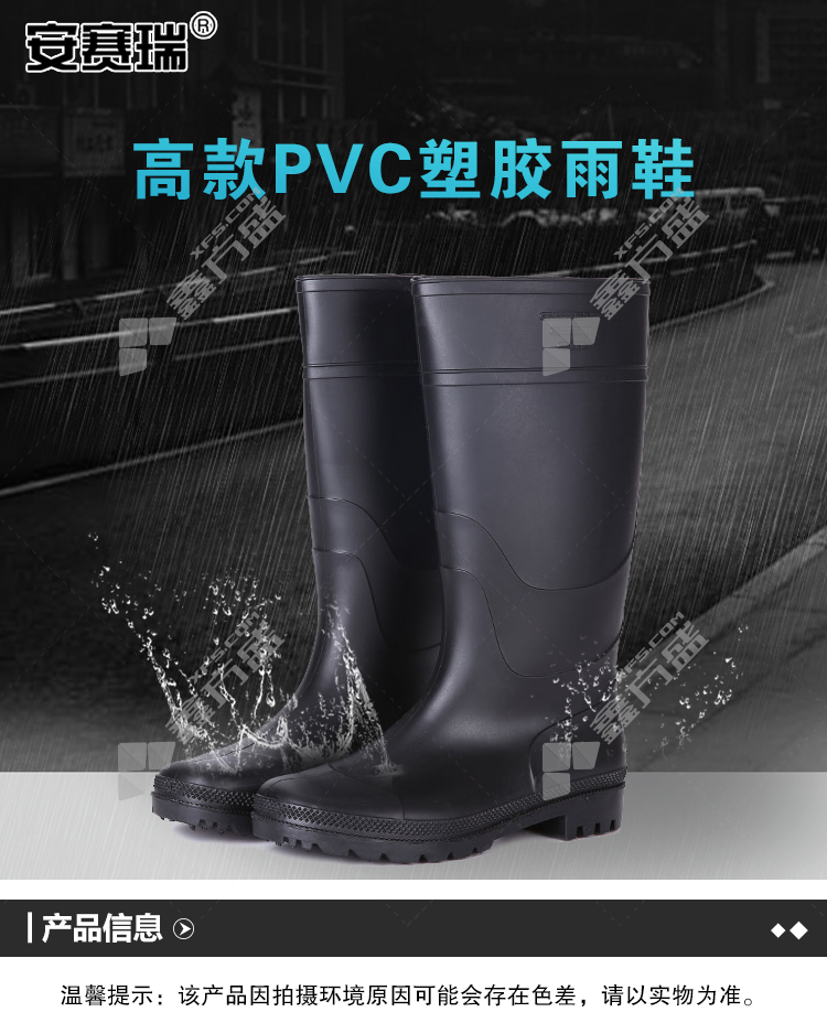 ansery blackhigh tube PVC plastic rain boots 16066 44code black 16059/37code /black