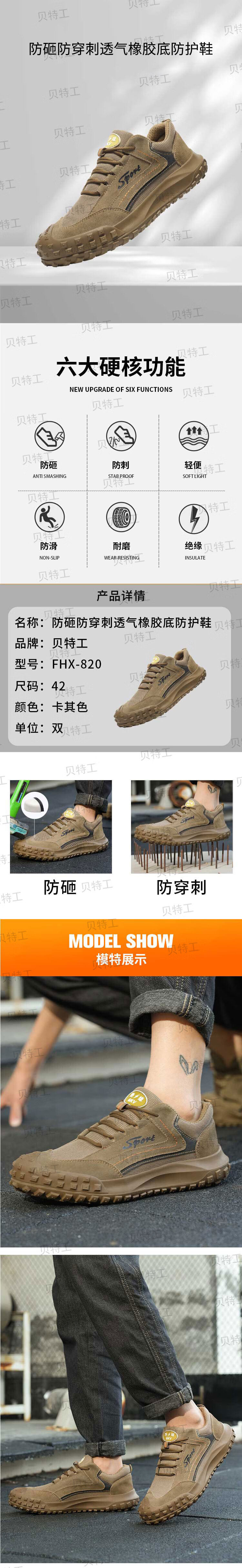 better anti-smash, anti-puncture, breathable rubber sole protective shoes FHX-820 42 code khaki (unit: pair) no specifications