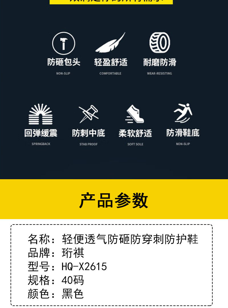 hengqi lightweight, breathable, anti-smash and anti-puncture protective shoes HQ-X2615 specifications: 40 yards black (unit: pair) HQ-X2615 no specifications