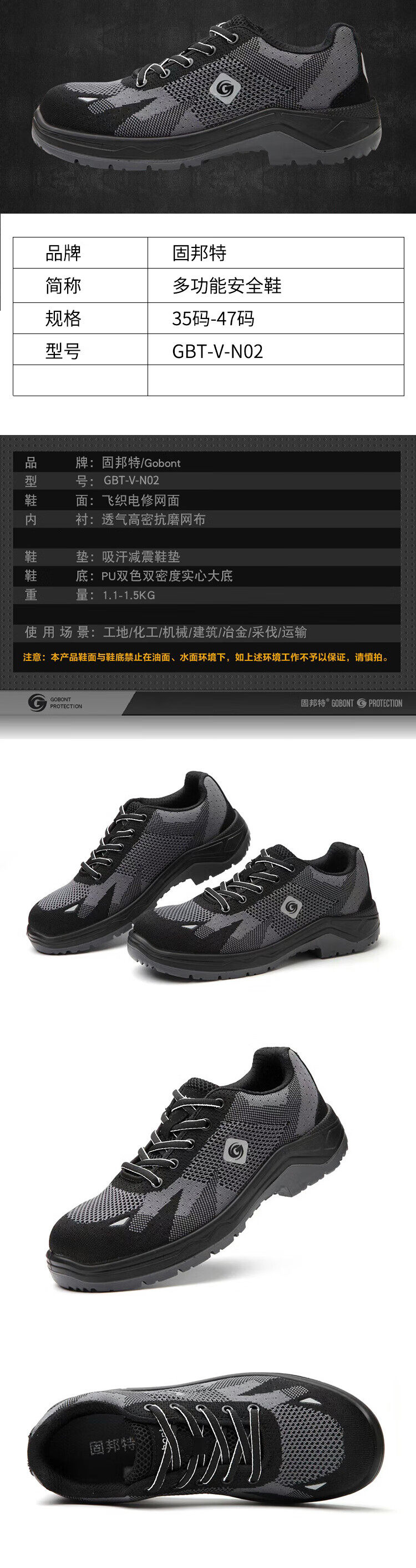 gubante multifunctional safety shoes GBT-V-N02 35 yard-47 yard gray (unit: pair) GBT-V-N02 no specifications