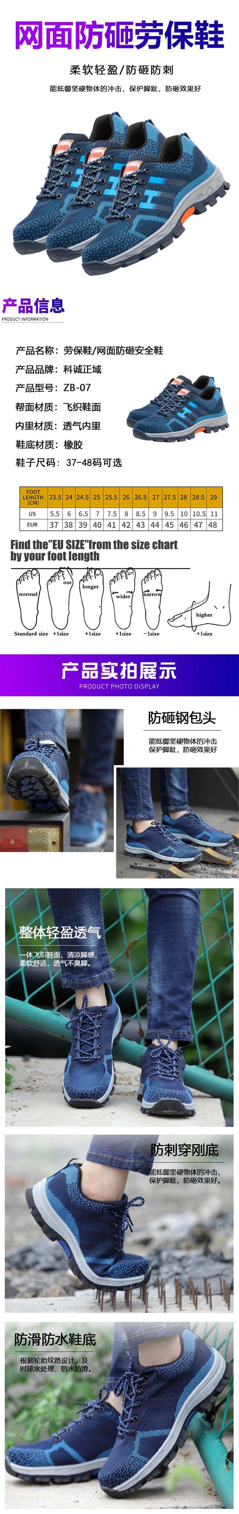 kecheng zhengyu labor protection shoes mesh anti-smash safety shoes ZB-07 37-48 code optional (unit: double) no specifications