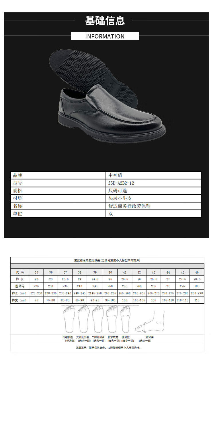 zhongshen shield comfortable business administrative labor protection shoes ZSD-A2B2-12 specifications: sizes available (unit: double ) ZSD-A2B2-12 no specifications