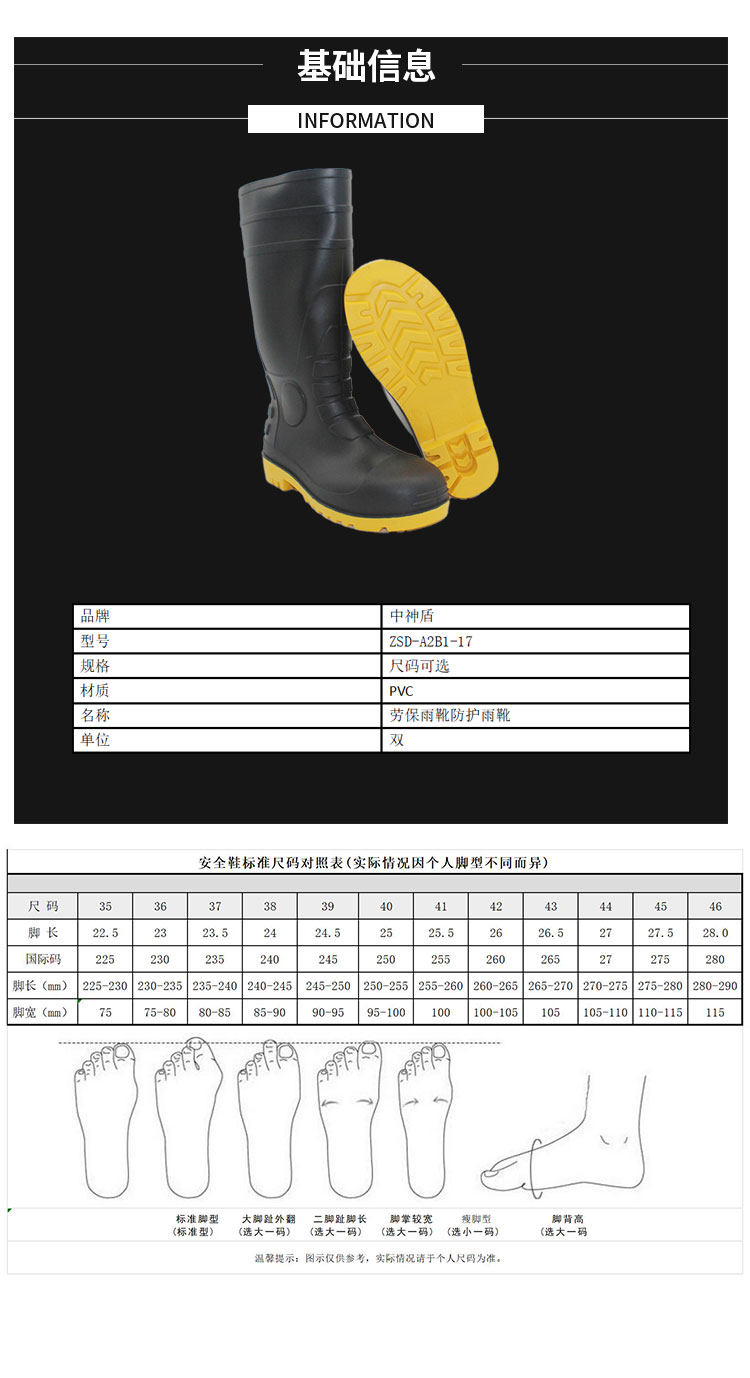 zhongshen shield labor protection rain boots protective rain boots ZSD-A2B1-17 specifications: sizes available (unit: double ) ZSD-A2B1-17 no specifications