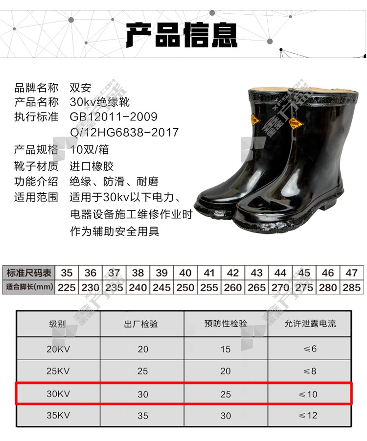 shuangan insulated shoes 30 kV no specifications