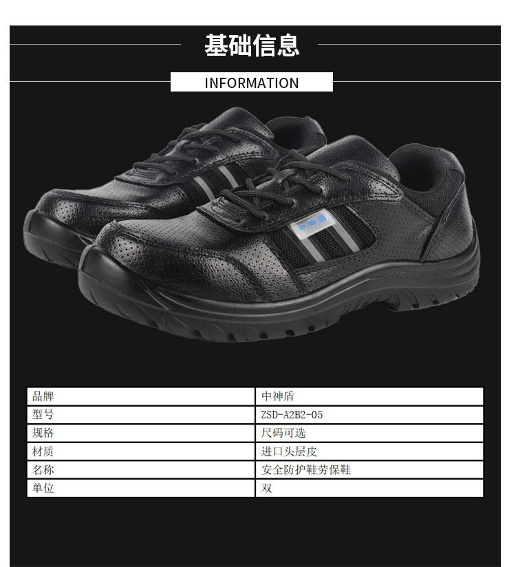 zhongshen shield safety shoes and labor protection shoes ZSD-A2B2-05 specifications: sizes available (unit: pair) ZSD-A2B2-05 no specifications
