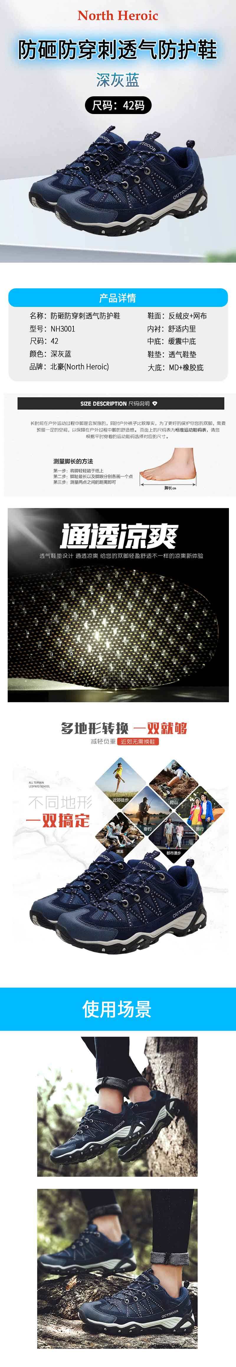 beihao ( North Heroic) anti-smash, anti-puncture, breathable protective shoes NH3001 42 code dark gray blue (unit: pair) no specifications