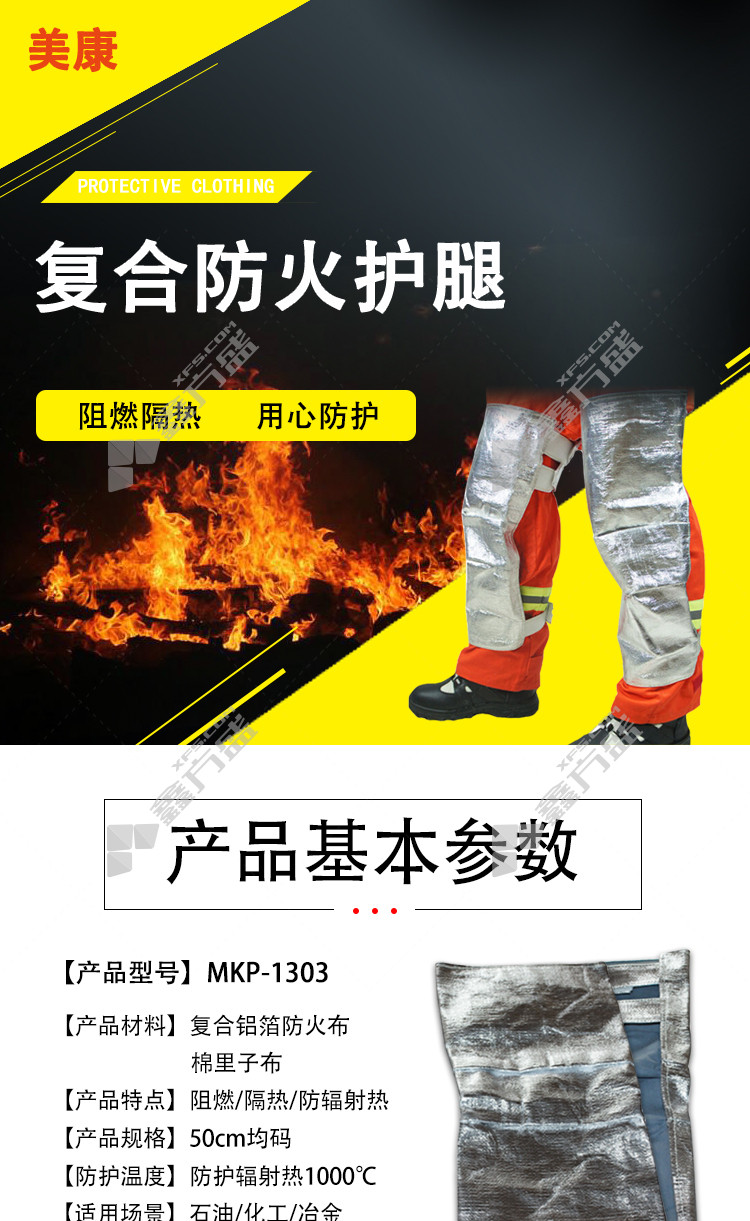 meikang MKP-1303 high temperature resistant radiant heat 1000 degree fireproof heat insulation leggings 50 cm silver no specification