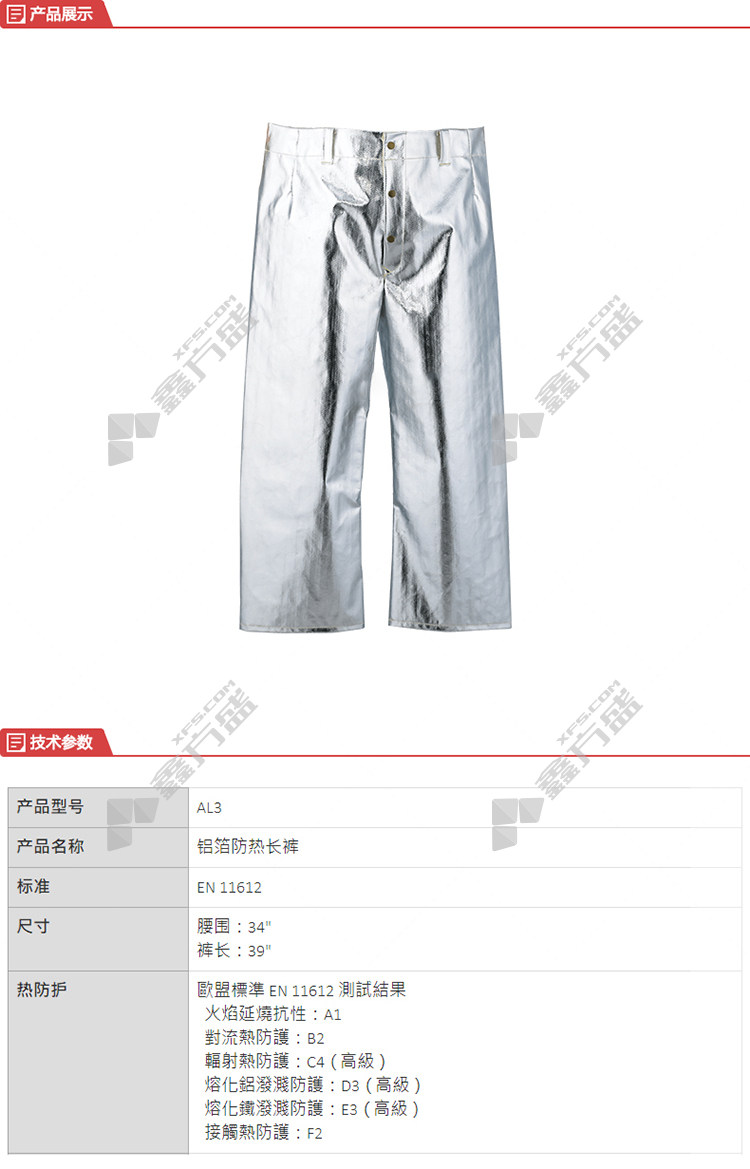 blue eagle aluminum foil flame retardant trousers AL3 no specifications