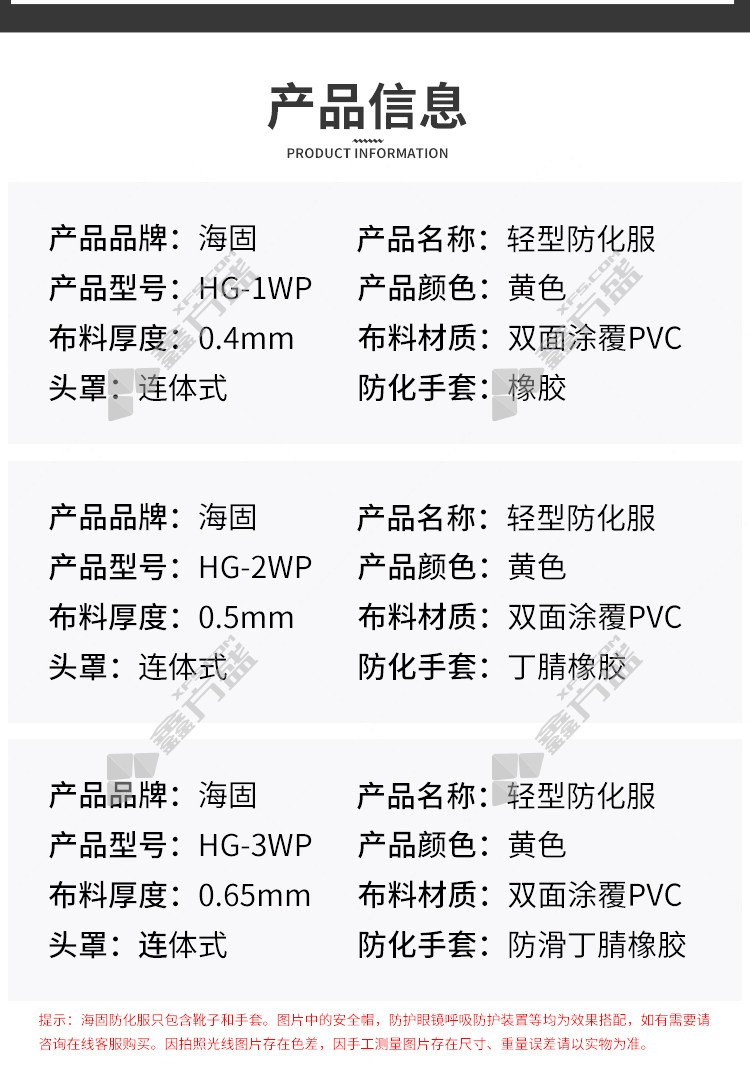 haigu HG-1WP yellow chemical protective suit 1 WP L code yellow 1 WP/M code yellow