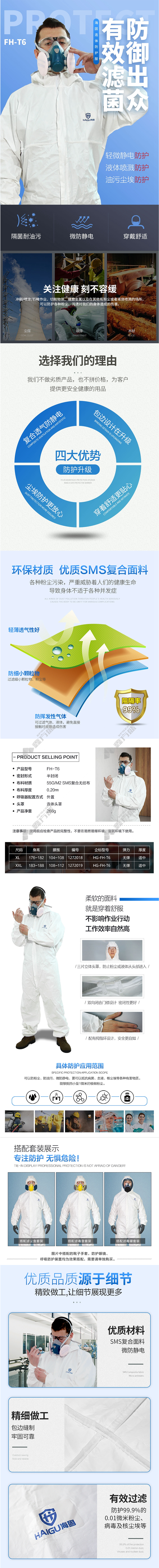 haigu SMS one-piece protective clothing XXL white HG-FH-T6 XL/white /HG-FH-T6