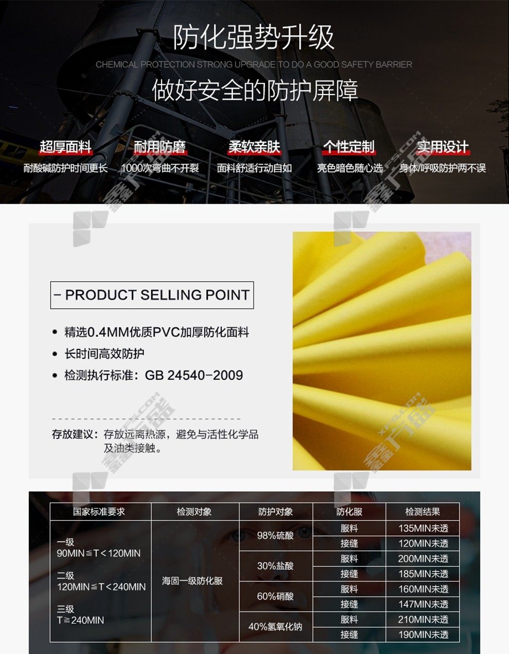 haigu HG-1WP split yellow chemical protective suit top 1 WP L code yellow 1 WP/M code yellow