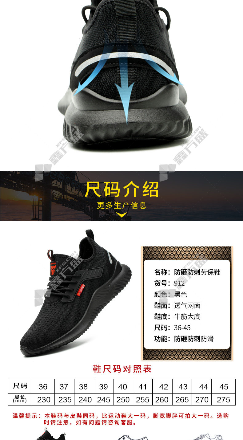 lao guanjia breathable casual lightweight anti-smash and anti-stab steel toe sports safety shoes 912 39code 912/37code