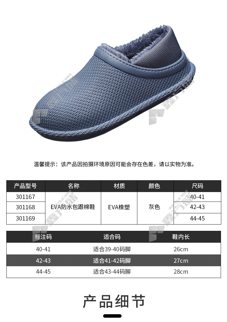 ansery EVA waterproof heel cotton shoes 301167 size 40 to 41grey 301167/40to size 41 /grey