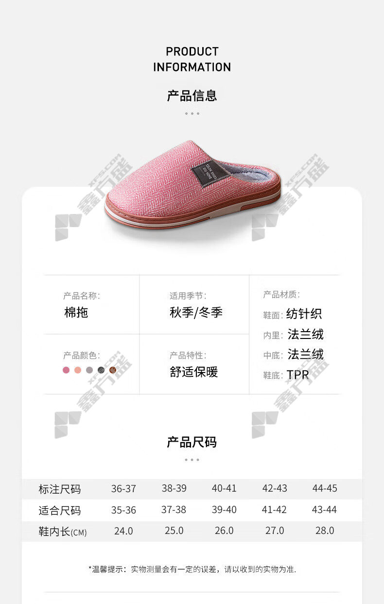 fei naisheng anti-slip soft bottom half pack winter cotton slippers FNS-11181 38-39code pink FNS-11181/38-39code /pink