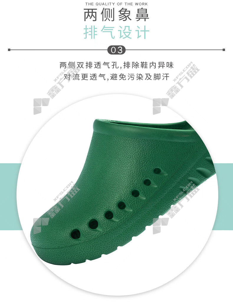 feinaisheng operating room breathable toe-toe clogs FNS-27255 41/42 green without loops FNS-27252/35/36/green without loops