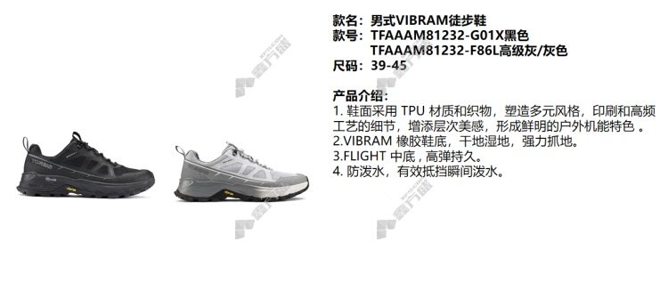 pathfinder TFAAAM81232 men's VIBRAM hiking shoes F86L 39code high grade gray /grey G01X/39code /black