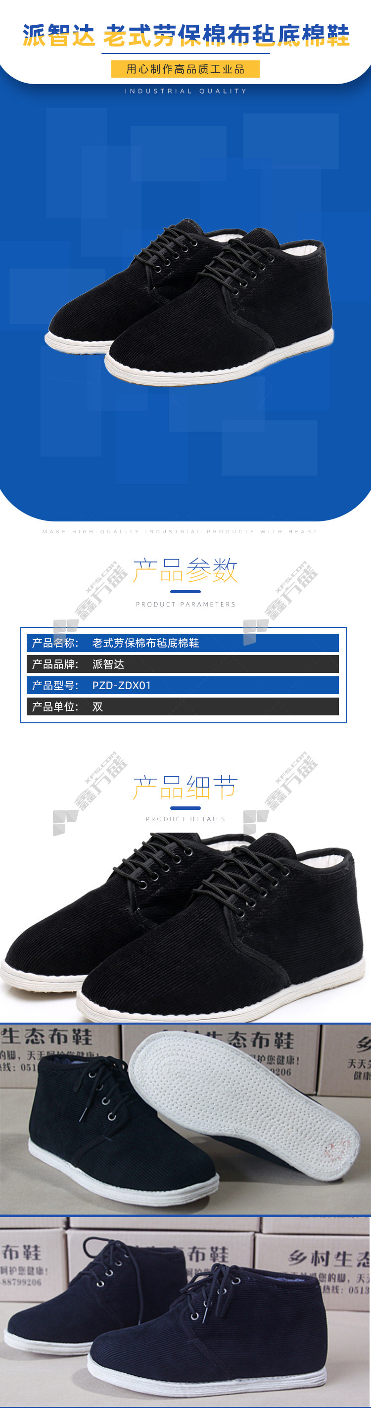 paizhida old-fashioned labor protection cotton felt-soled cotton shoes PZD-ZDX01 size remarks no specifications