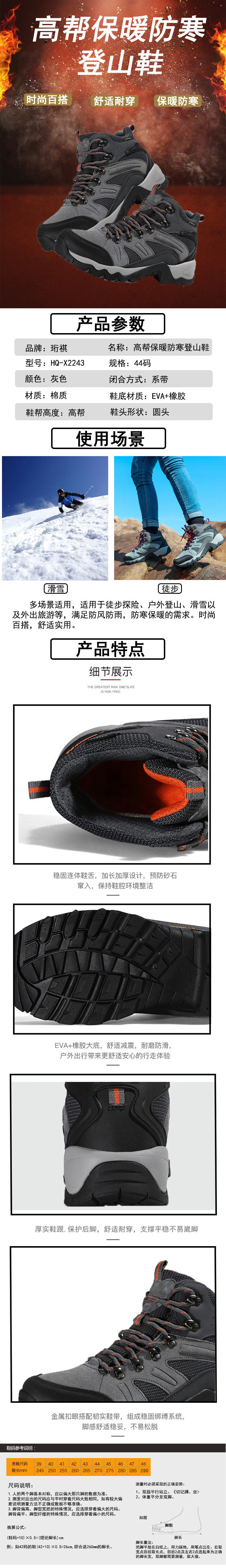 hengqi high-top warm and cold-proof hiking shoes HQ-X2243 44 yard gray (unit: double ) HQ-X2243 no specifications