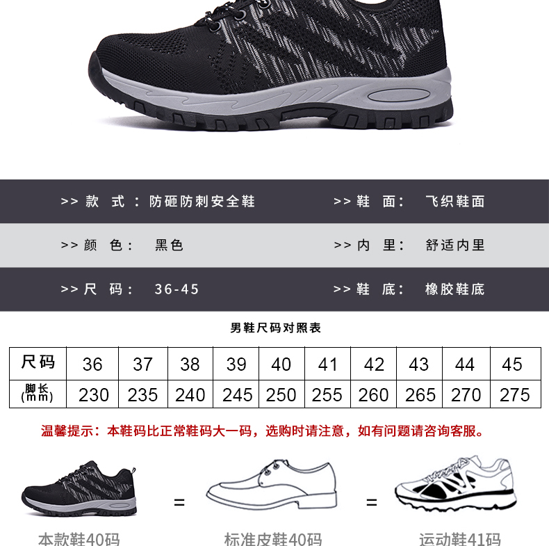 lao guanjia 201 labor protection shoes, anti-smash and anti-puncture work shoes, rubber soles, size 41, no specifications