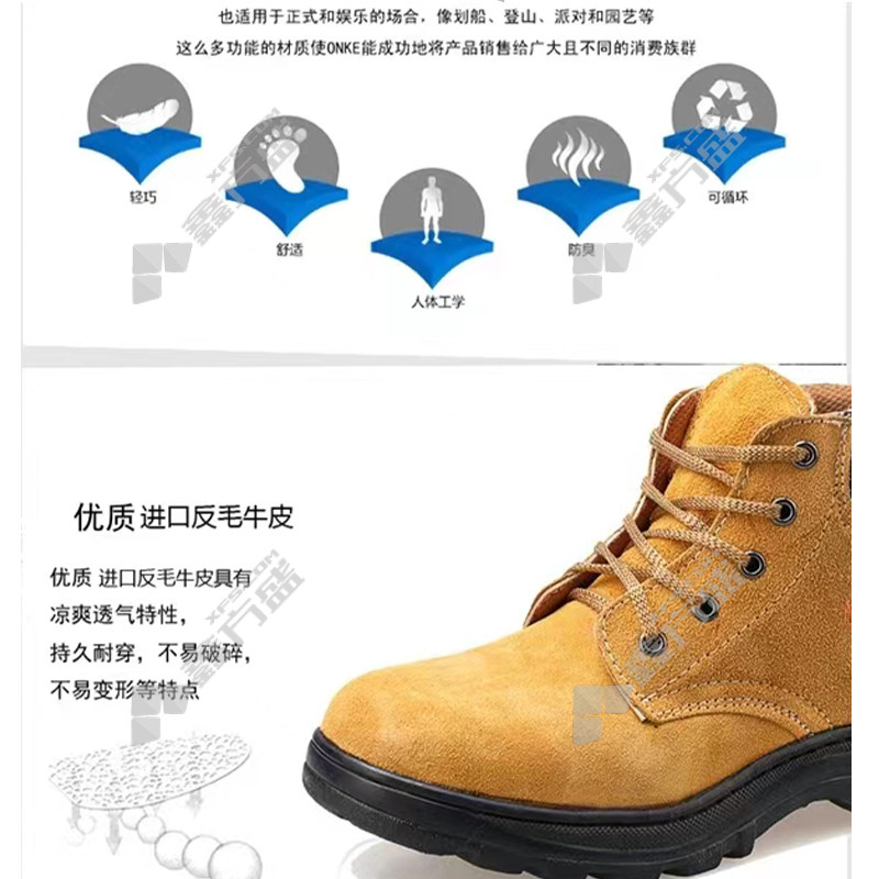 three british long-term SYCY work shoes, labor protection shoes, cowhide safety shoes, construction site anti-smash, anti-puncture, wear-resistant, non-slip, breathable, 44 size cowhide yellow, no specifications
