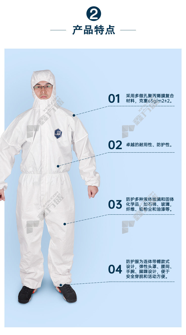 integrity CG500B lightweight chemical protective clothing CG500B 2XL code white CG500B/S code /white