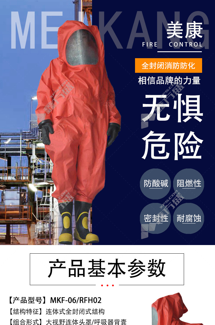 meikang meikang fully enclosed chemical protective clothing RFH02 MKF-06 XL red S/red
