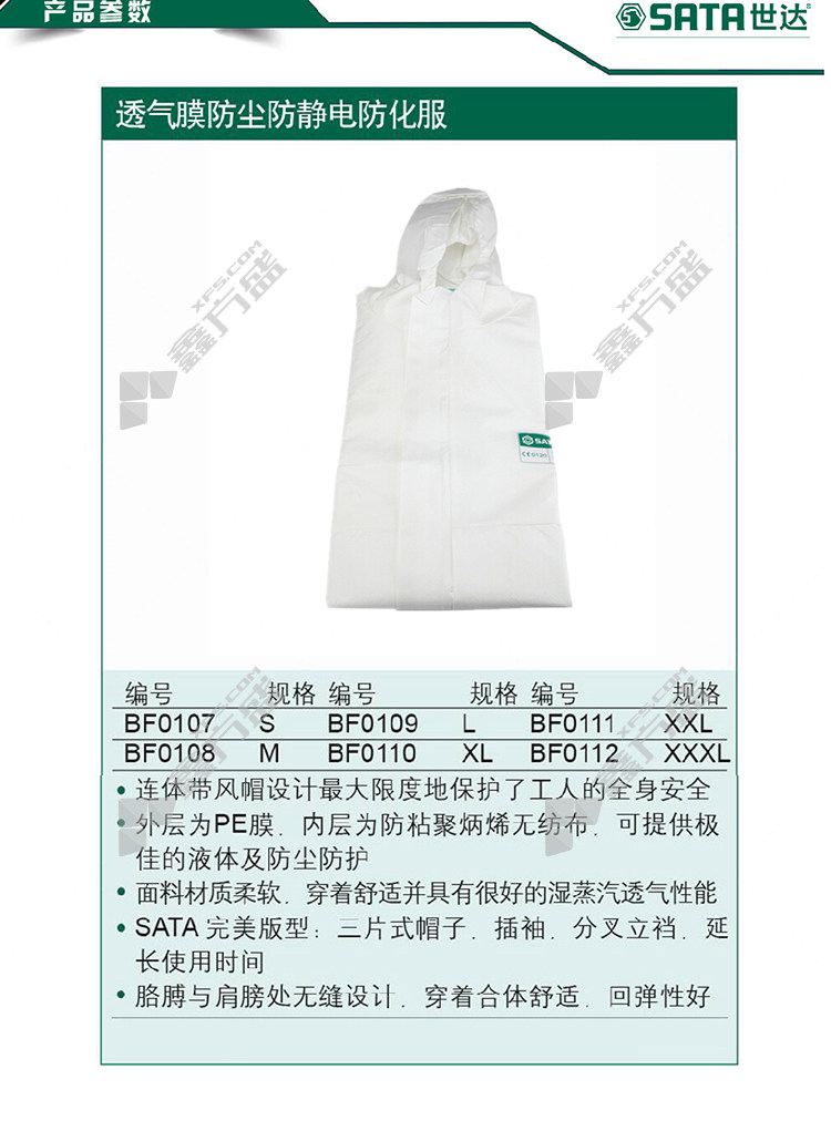 star 1 SATA breathable membrane dust-proof, anti-static and chemical protective clothing BF0107 S BF0107/S