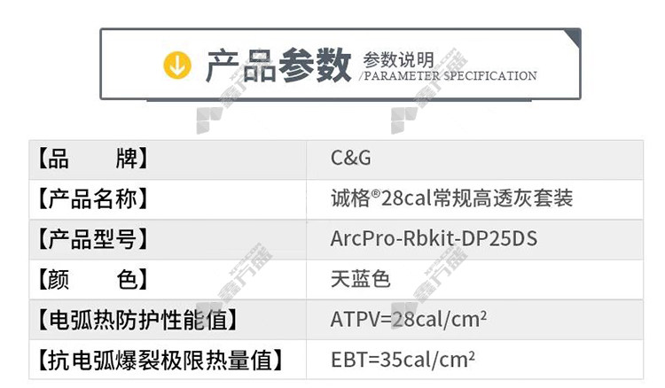 integrity C&G arc protection suit ArcPro-RBkit-DP25DS sky blue 28 cal/cm2 M yard sky blue ArcPro-RBkit-DP25DS S code /sky blue /ArcPro-RBkit-DP25DS