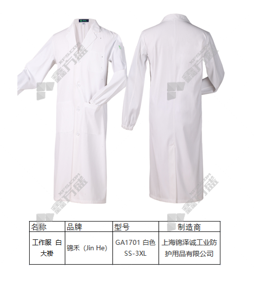 jinhe anti-static capwhitecoat GA1701 SS-3XL whitese jinhe /S/white