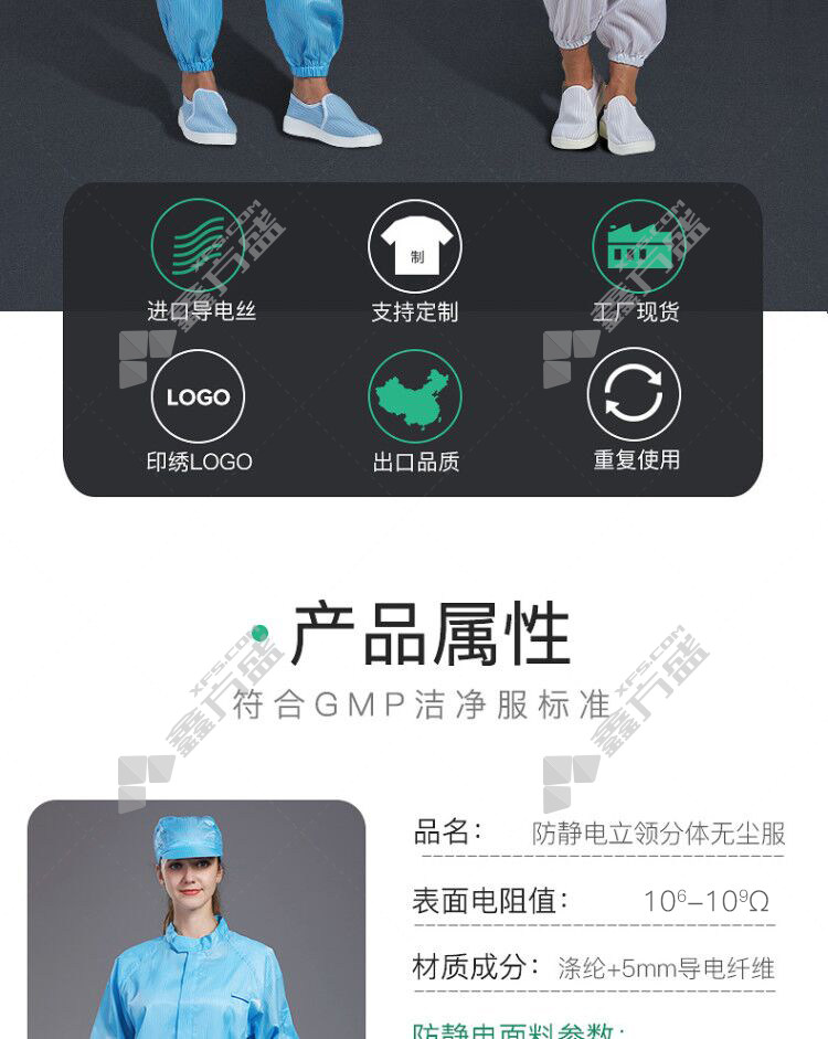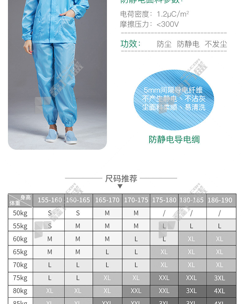 hanyang clean split stand collar clean dustproof anti-static clothing H-1106 XXXL yard blue H-1106/S code /white