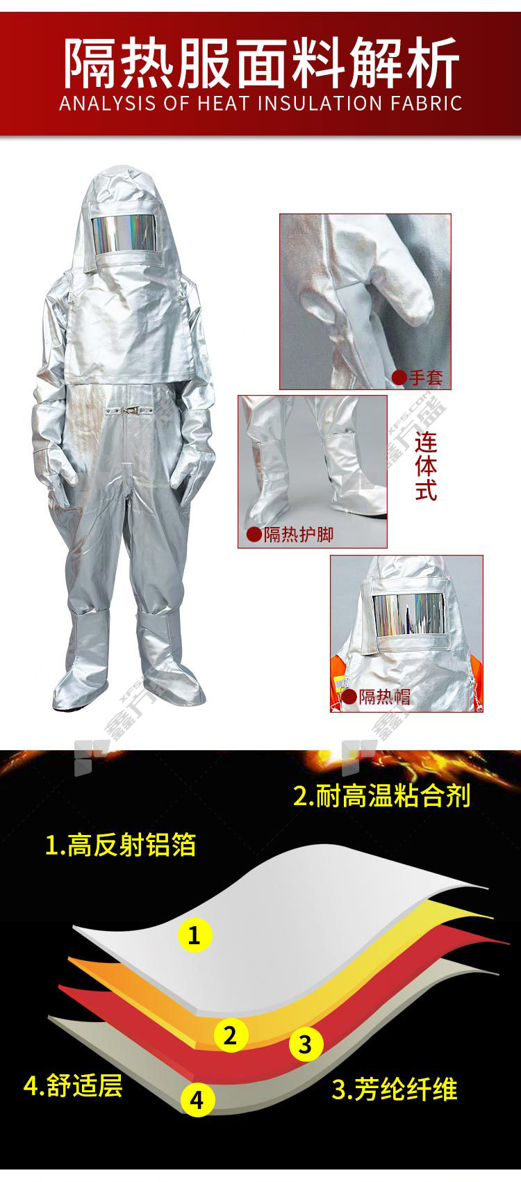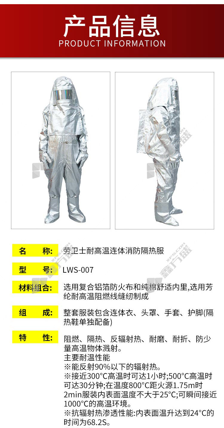 laoweishi fire protection one-piece thermal insulation suit that can protect against radiant heat to 1000 degrees LWS-007 largesilvery white LWS-007/small /silvery white