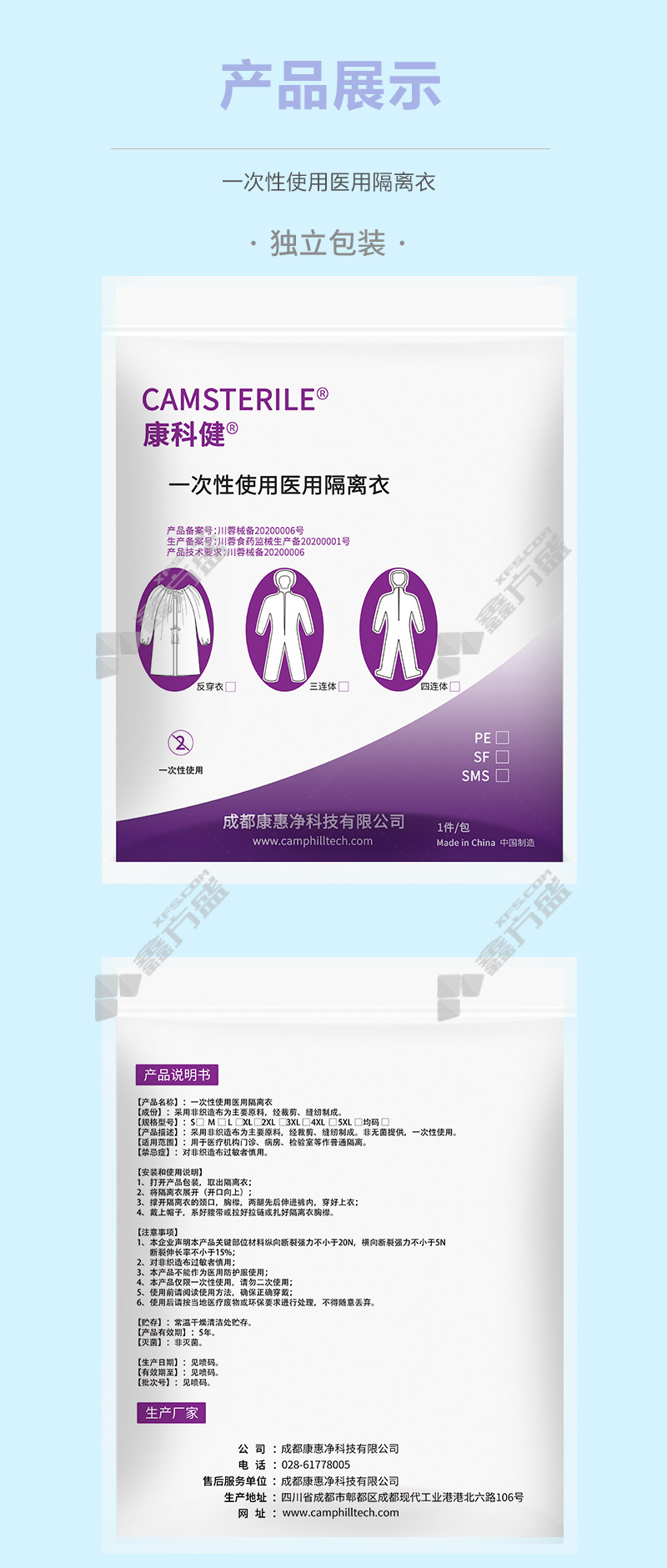 kangkejian four-piece isolation gown four-piece XL code white quadruple /M code /white