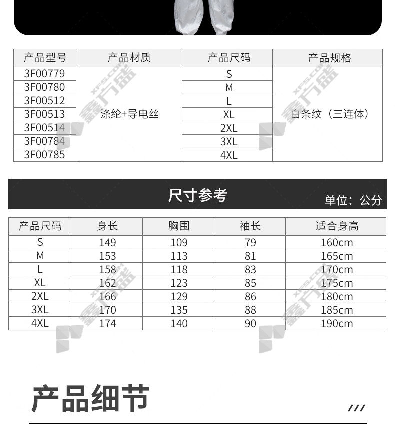 ansery hooded three-piece clean coverall 3 F00514 2XL code white stripes 3 F00779/S code /white stripes