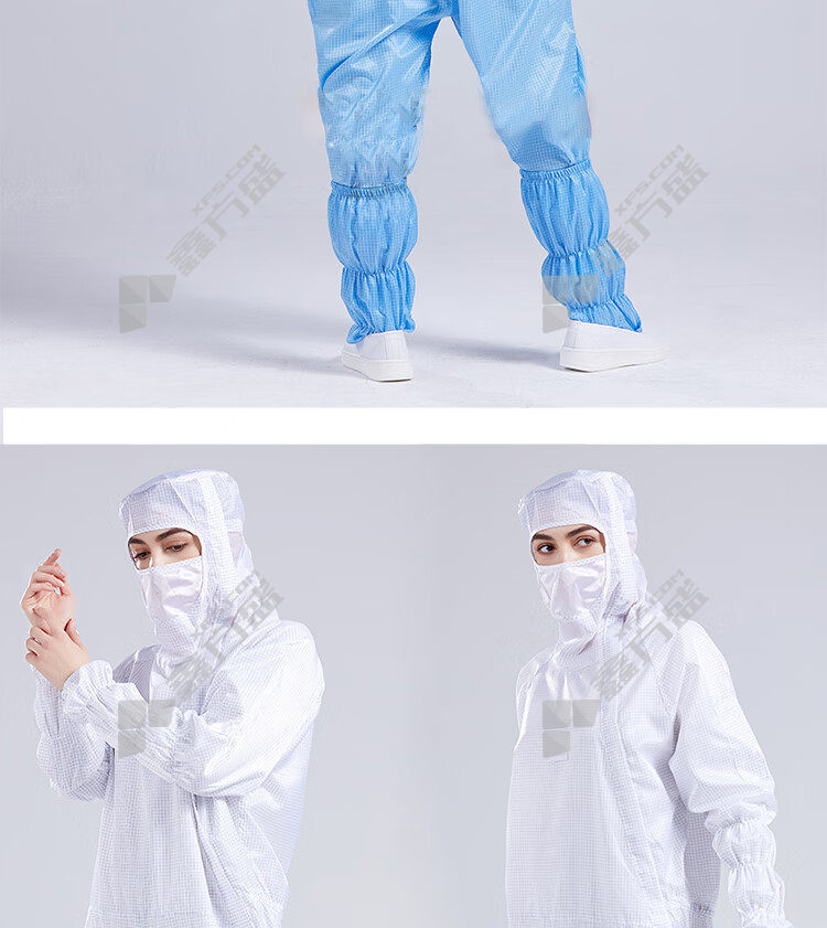 moufu full body protective clothing mesh anti-static clothing included PU anti-static shoes 2 XL navy blue S/white