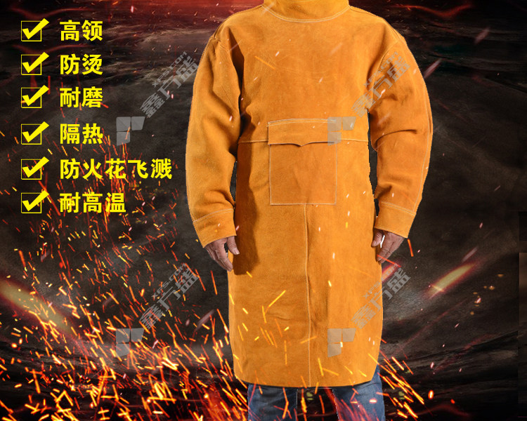 moufu high temperature resistant and anti-scalding cowhide welding labor protection clothing 9986 high collar short style 85 cm brown9986 /high collar short style 85 cm/brown