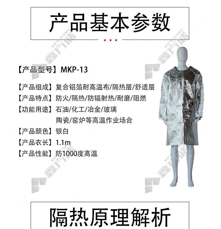 meikang MKP-13 high temperature resistance, radiant heat resistance, 1000 degree fire protection and heat insulation placket 1.1 m silver no specification
