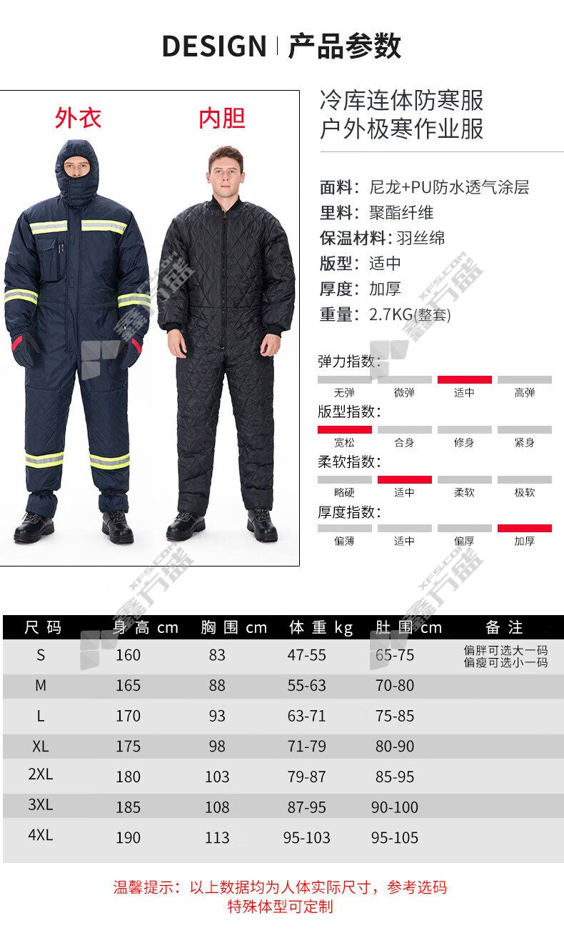 fei naisheng frozen ultra-low temperature one-piece work protective cotton coat and cold-proof clothing liner FNS-18630 black L code FNS-18628/black /S code
