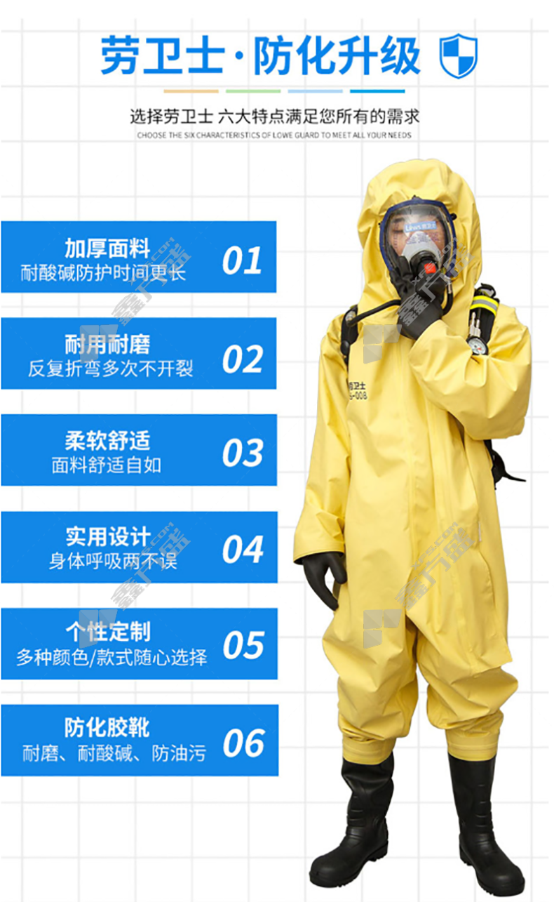 law guards FHLWS-008 fully enclosed heavy duty chemical protective suit yellow FHLWS-008 L code 175-180 yellow /FHLWS-008/S code 165-170