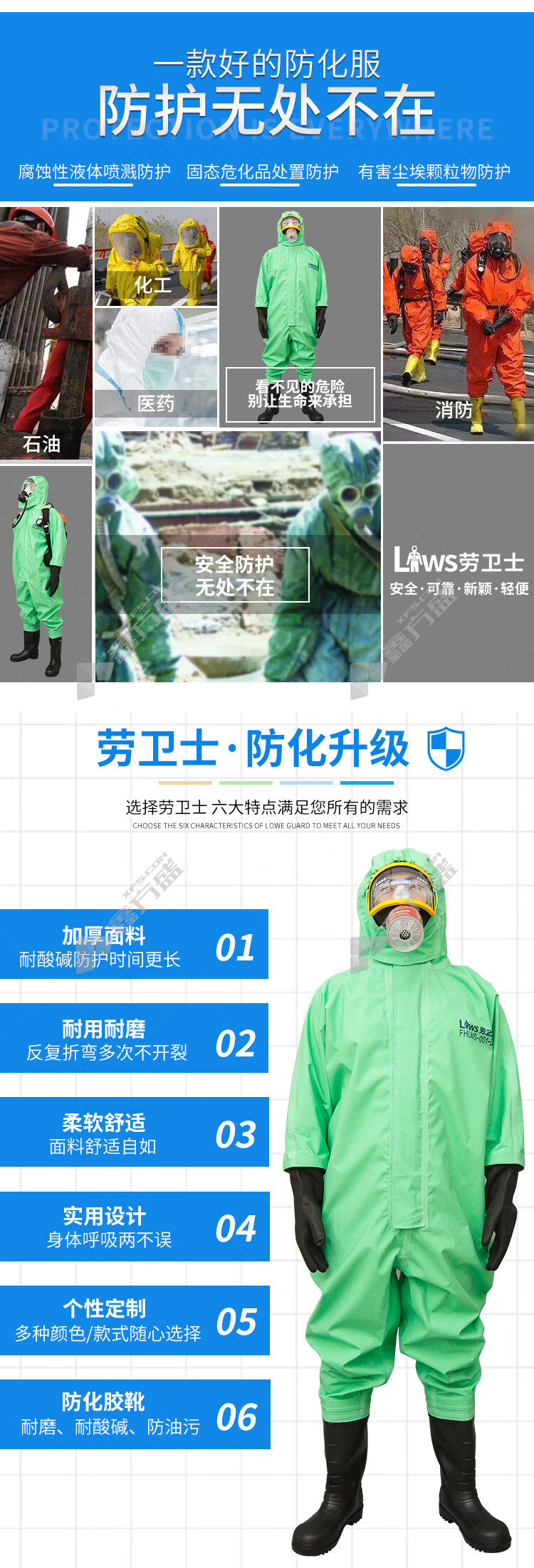 law guards FHLWS-002-B fully enclosed heavy duty chemical protective suit green FHLWS-002-B S code 165-170 /FHLWS-002-B/S code 165-170
