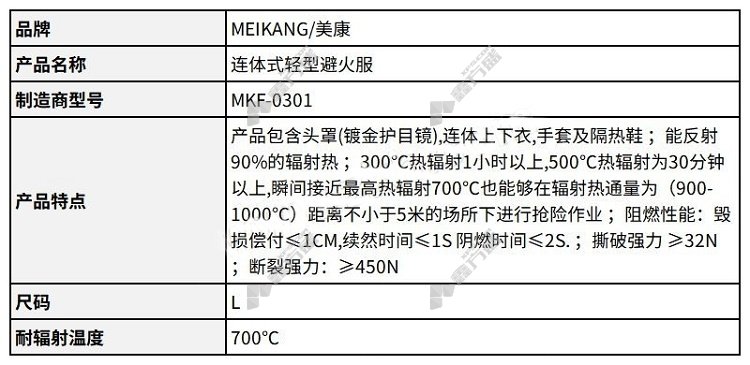 meikang one-piece lightweight fire protection suit with backpack MKF-0301 M yard silver MKF-0301/S code /silver