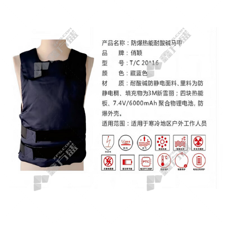 qiaoying explosion-proof thermal acid and alkali resistant vest T/C20*16 one size fits all blue no specifications