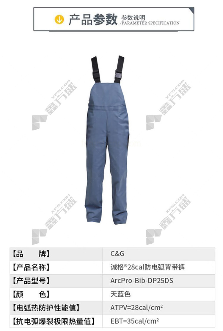 integrity C&G arc protection pants ArcPro-Bib-DP25DS sky blue 28 cal/cm2 XL yard sky blue ArcPro-Bib-DP25DS S code /sky blue /ArcPro-Bib-DP25DS