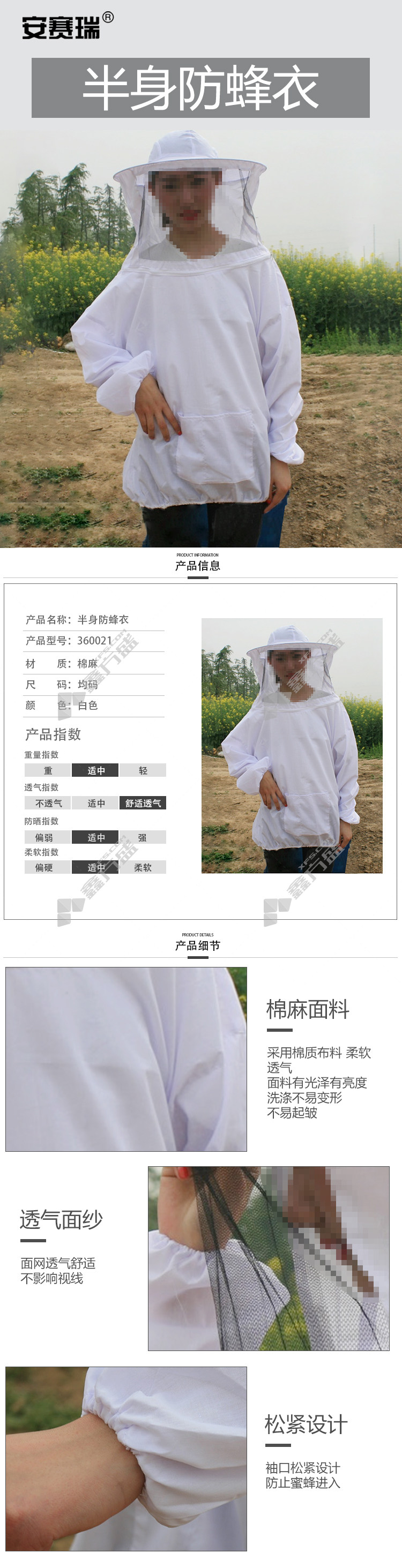 ansery 360021 bee-proof suit without pants white 360021 one size fits all no specifications