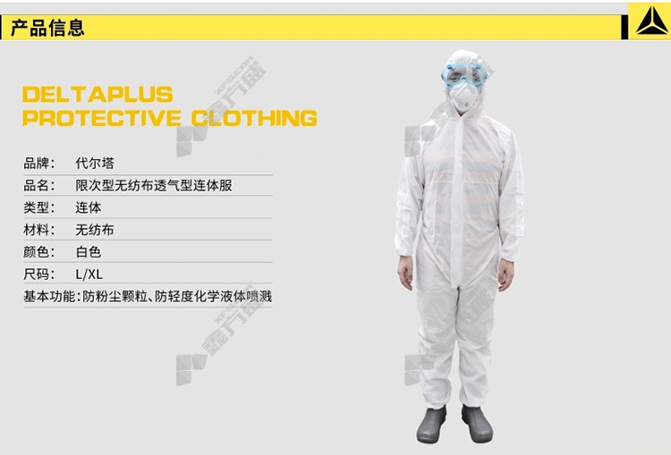 delta DT215 breathable type limited to 5 /6level chemical protective clothing 406215 L 406215/M