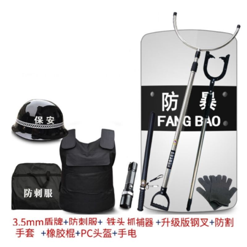 domestic anti-riot upgraded version eight-piece set. anti-riot shield, steel fork, anti-stab clothing, anti-cutting gloves, security helmet, anti-riot stick, no specifications