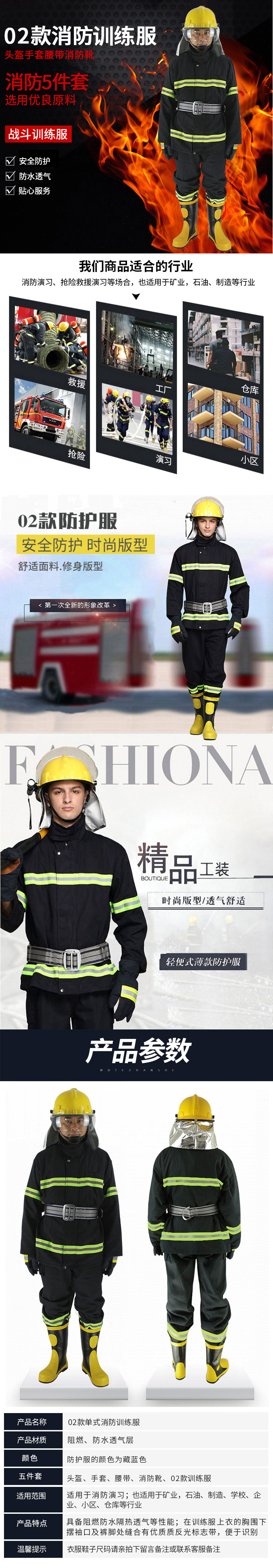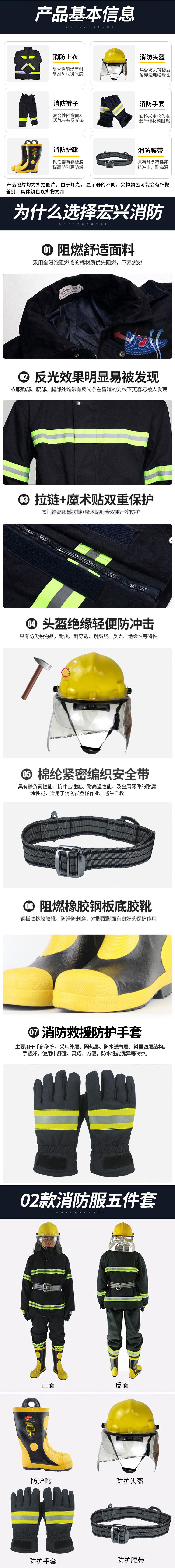 hongxing 02 size optional five-piece set of flame-retardant protective clothing (price unit: set) including helmet +firefighting suit +belt +training boots +gloves navy blue no specifications