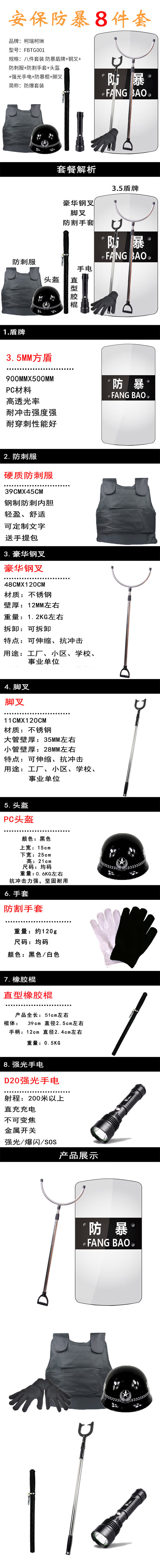 corey colin FBTG001 eight-piece explosion-proof suit (price unit: set) riot-proof shield +steel fork +stab-proof clothing +cut-resistant gloves +helmet +strong light flashlight +riot baton +the fork has no specifications