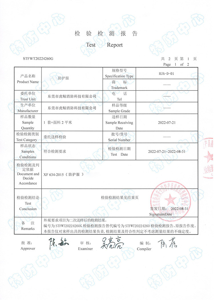 killer whale safety heavy protective clothing HJA-D-01 the weight of the complete set of protective clothing ≤5kg 6 piece set (unit: set) no specification