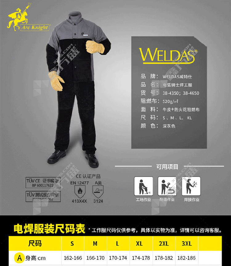 wits arc knight fire retardant cloth welding uniform 38-4350- XL no specifications